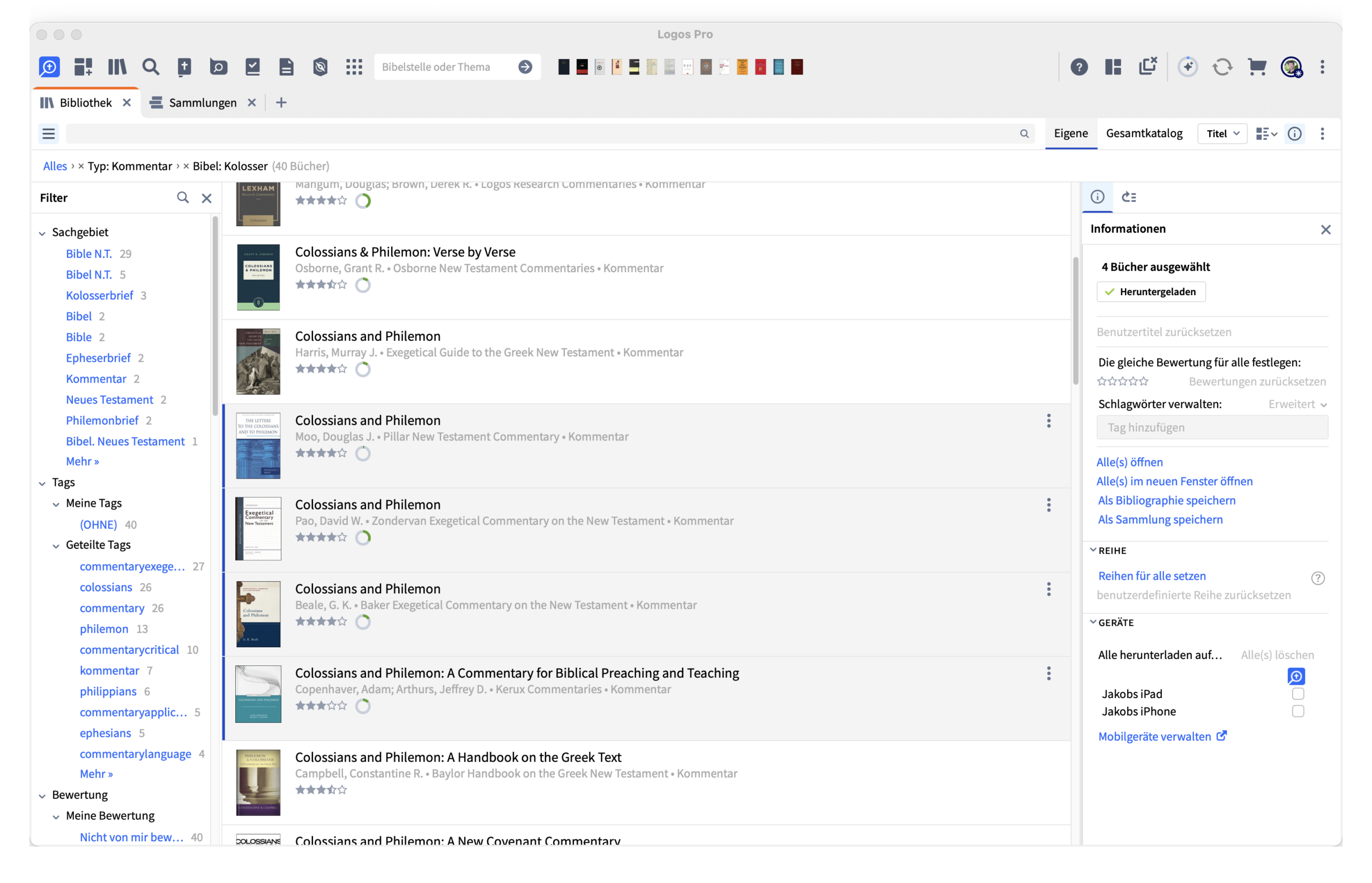 In der Praxis funktioniert das Anlegen solcher Sammlungen gut und ist intuitiv. Man merkt, dass hier ein durchdachtes Konzept dahintersteht. Gerade für die Predigtarbeit liegt hier großes Potenzial, weil man nicht mehr mit der gesamten Bibliothek arbeiten muss, sondern bewusst mit einer ausgewählten Gruppe von Quellen.